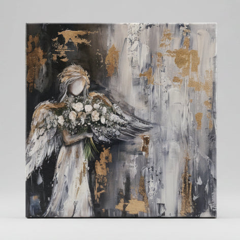 Angel Canvas Art Print, a touch of divine elegance for homes. Canvas art is printed using high end fade resistant and eco friendly ink. Canvas is wrapped around a lightweight wooden frame with a 1/2" unprinted raised edge