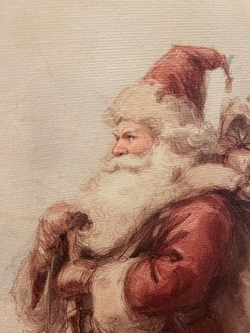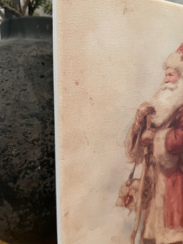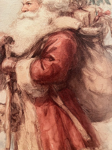 Vintage Santa Claus dressed in red canvas art print. Art is printed using eco friendly fade resistant ink. Canvas is wrapped around light weight wooden frame with a 1/2" raised unprinted edge.